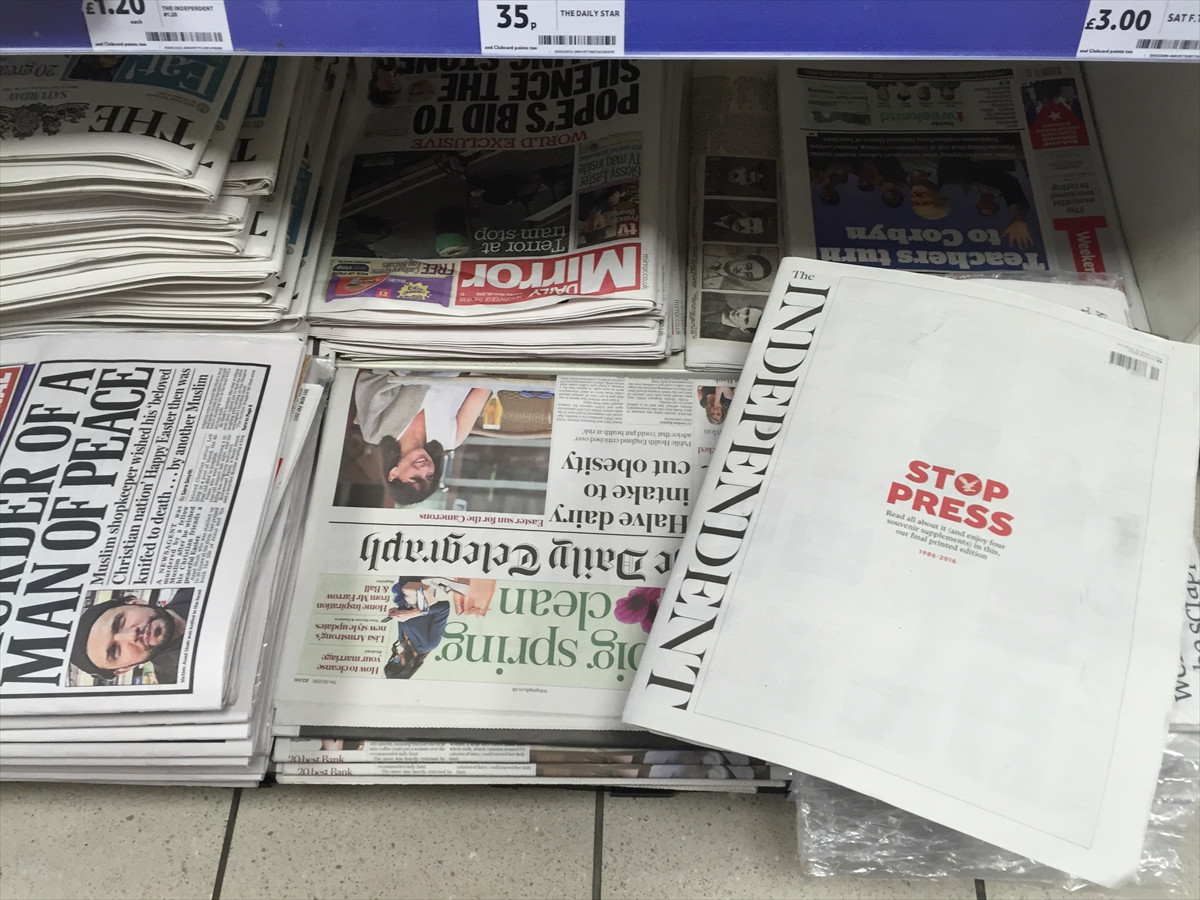 LONDRA (AA) - İngiltere’nin önde gelen gazetelerinden The Independent bugün son kez basıldı.