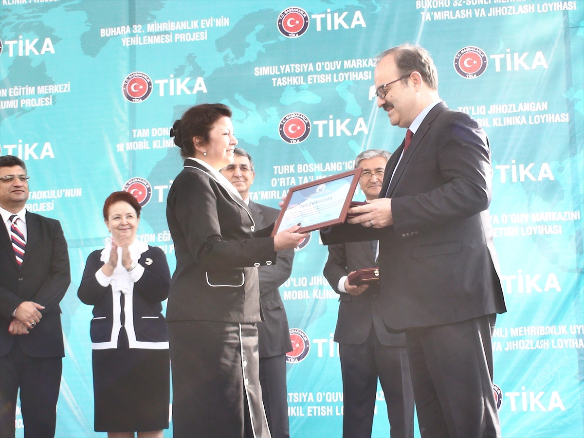 Özbekistan’da faaliyet gösteren Sağlıklı Evlat Vakfına TİKA tarafından hediye edilen 10 mobil klinik aracının teslimi için tören düzenlendi.