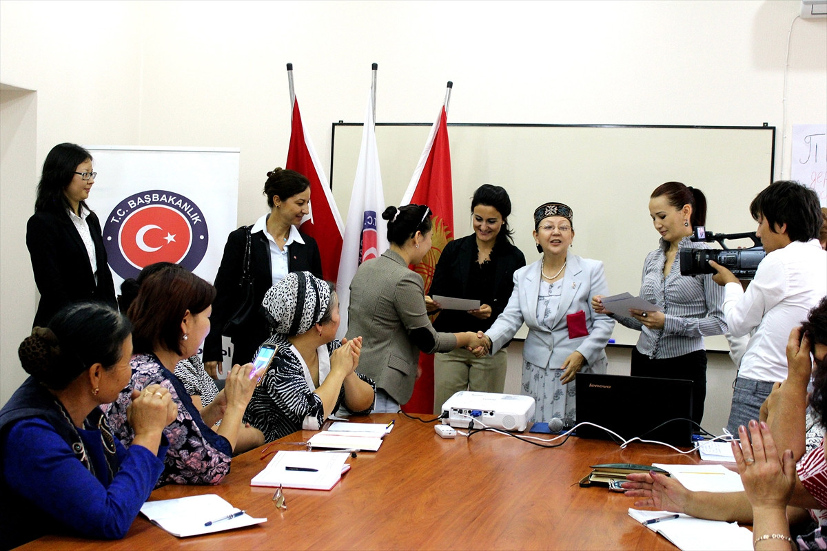 BİŞKEK (AA) - Kırgızistan'da, Türk İşbirliği ve Koordinasyon Ajansı Başkanlığınca (TİKA) desteklenen mesleki eğitim programlarını tamamlayan kadınlar sertifikalarını aldı.