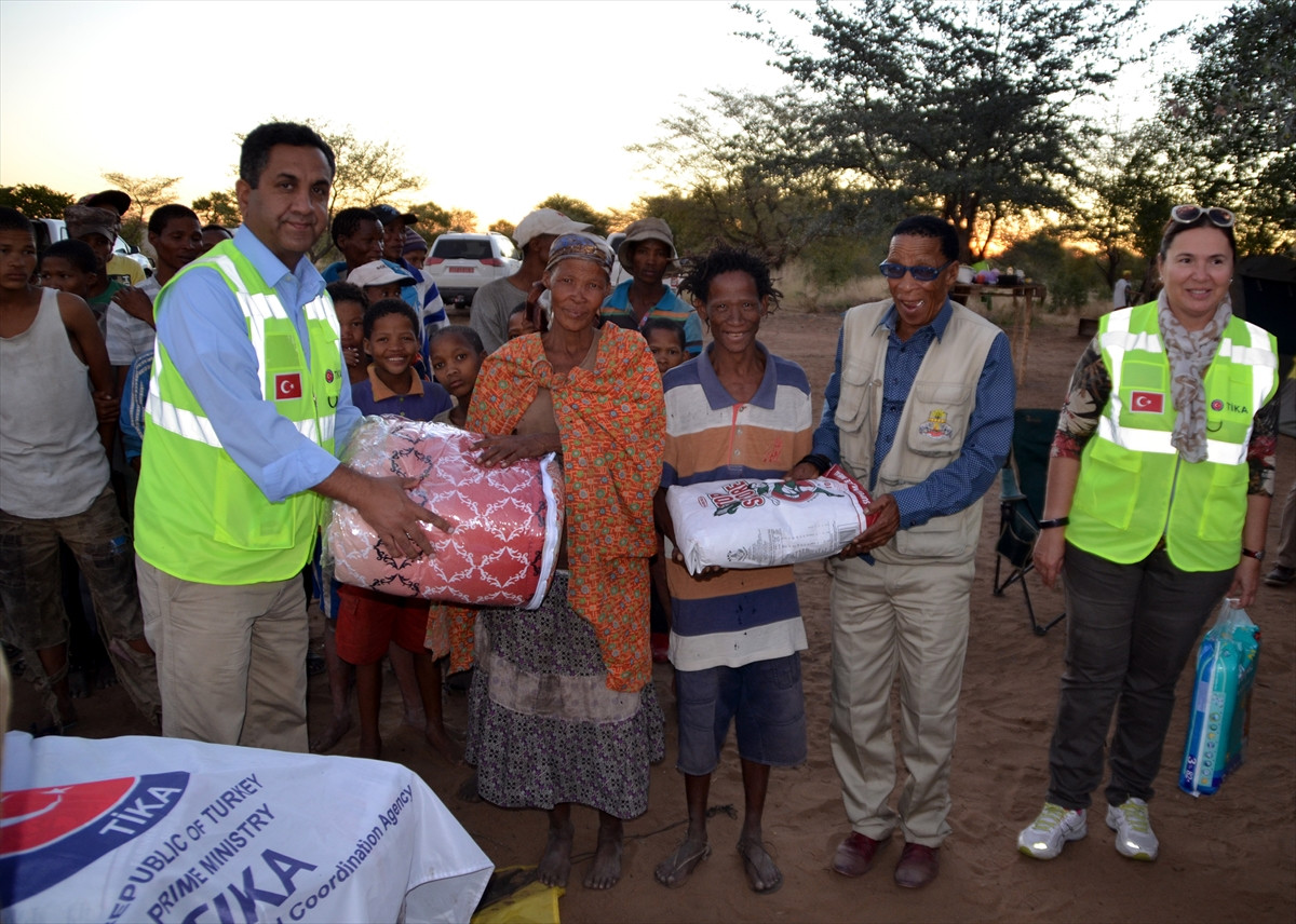 TİKA'dan yapılan yazılı açıklamaya göre, Namibya’nın Otjozondjupa bölgesi Tsumkwe şehri etrafındaki kamplardaki sığınmacılara gıda, hijyen ve kırtasiye ürünleri ile ayakkabı ve battaniyeden oluşan insani yardım malzemeleri dağıtıldı.