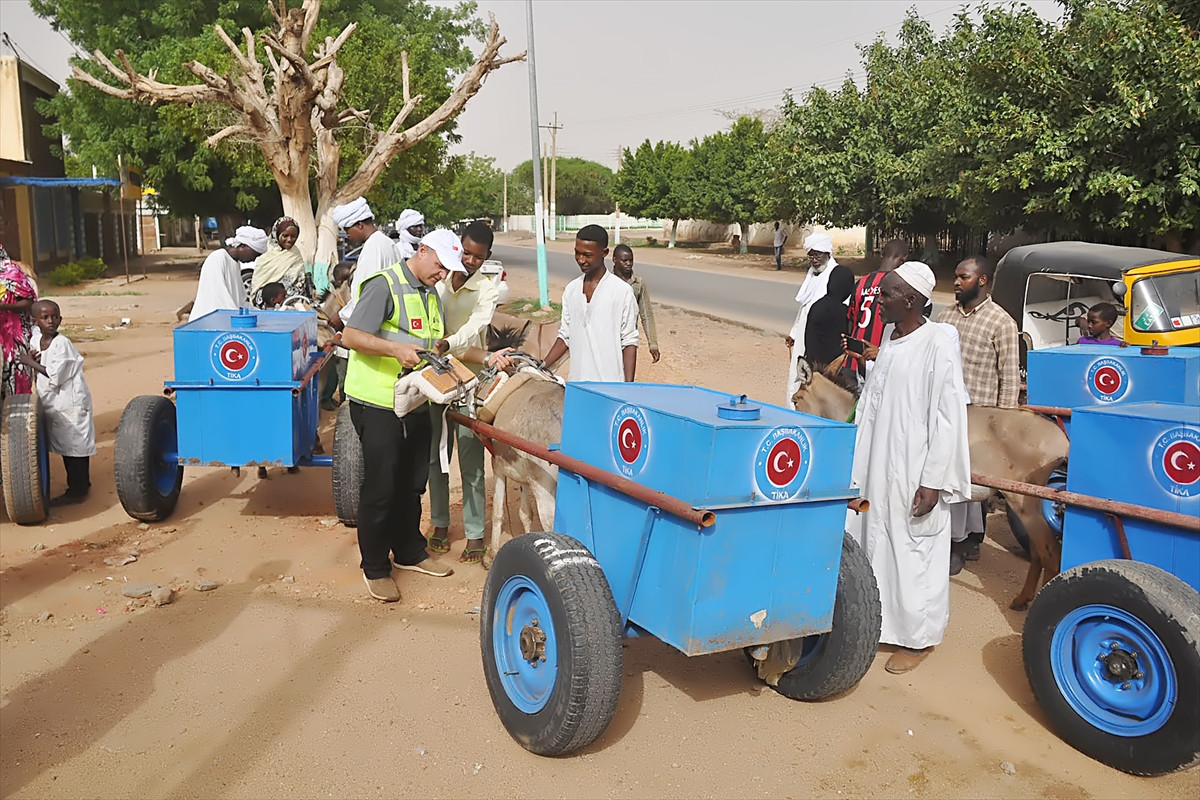 Güney Darfur’da yaşanan su sıkıntısı nedeni ile yerleşim yerlerine uzak noktada bulunan su kuyularından temin edilen sular, su tankları ile elde taşınarak dağıtılıyor ve bu yolla gelir elde ediliyor. TİKA, bu uygulamanın daha sağlıklı ve hijyenik şekilde hayata geçirilmesi ve yetimlere iş imkanı sağlanması amacı ile yük hayvanları tarafından çekilen, daha fazla su taşıma kapasitesine sahip su tankları dağıtımı gerçekleştiriyor.