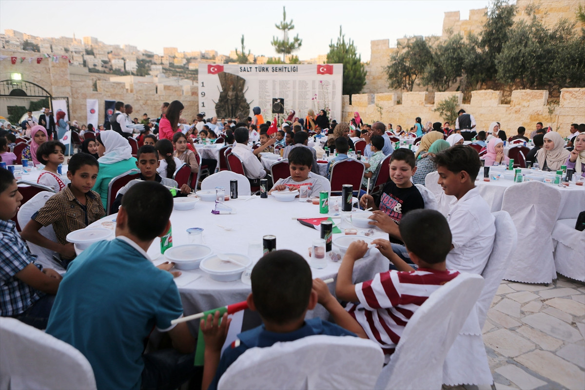 Başkent Amman'a 30 kilometre uzaklıktaki Es-Salt kentindeki Salt Türk Şehitliği'nde verilen iftara, sekiz dernekten yaşları 4 ila 17 arasında değişen 500 yetim çocuk katıldı.