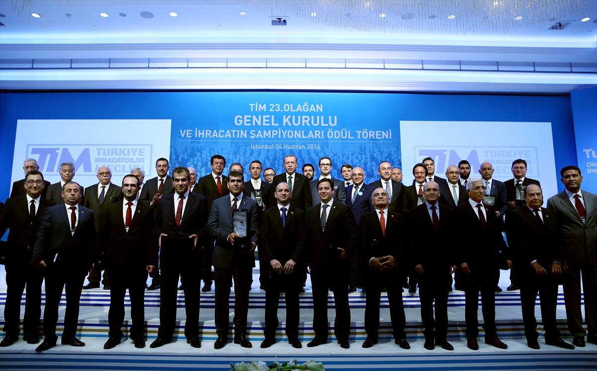 Erdoğan, Grand Tarabya Otel'de düzenlenen TİM 23. Olağan Genel Kurulu ve İhracat Şampiyonları ödül törenindeki konuşmasında, sadece ihracatın milli gelirin beşte birini oluşturmasının bile başlı başına ihracatçılar için iftihar, yöneticiler için de bir takdir sebebi olduğunu dile getirdi.