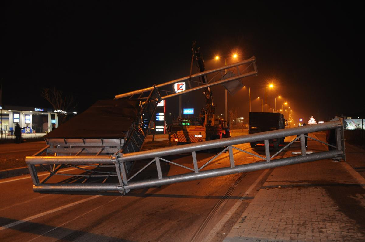 Bartın'dan Ankara yönüne giden Erdal Alaca (35) idaresindeki 06 DP 6061plakalı tır, Gecen köyü mevkisi Toptancılar Hali Kavşağı yakınlarında, damperin açılması nedeniyle dorsesinin kalkması sonucu karayollarına ait 5 metre yüksekliğindeki dijital uyarı levhasına çarptı.
