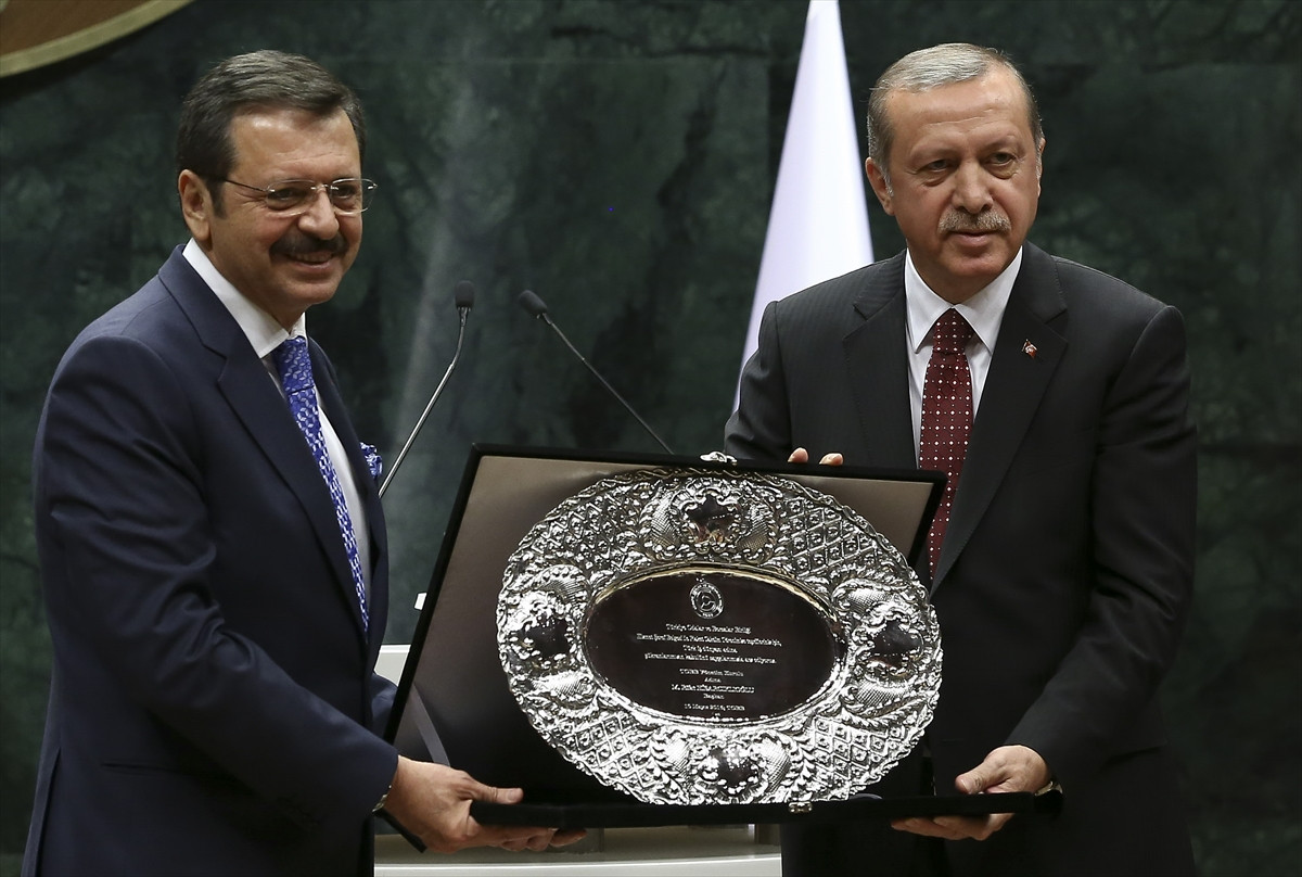 Erdoğan, Türkiye Odalar ve Borsalar Birliği (TOBB) İkiz Kuleler'de yapılan "TOBB 72. Genel Kurul Hizmet Şeref Belgesi ve Plaket Töreni"ne katıldı.