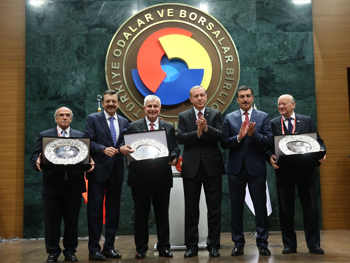Erdoğan, Türkiye Odalar ve Borsalar Birliği (TOBB) İkiz Kuleler'de gerçekleştirilen "TOBB 72. Genel Kurul Hizmet Şeref Belgesi ve Plaket Töreni"nde yaptığı konuşmada, geçen aylarda üst üste çok önemli yıl dönümlerinin kutlandığını anımsattı.