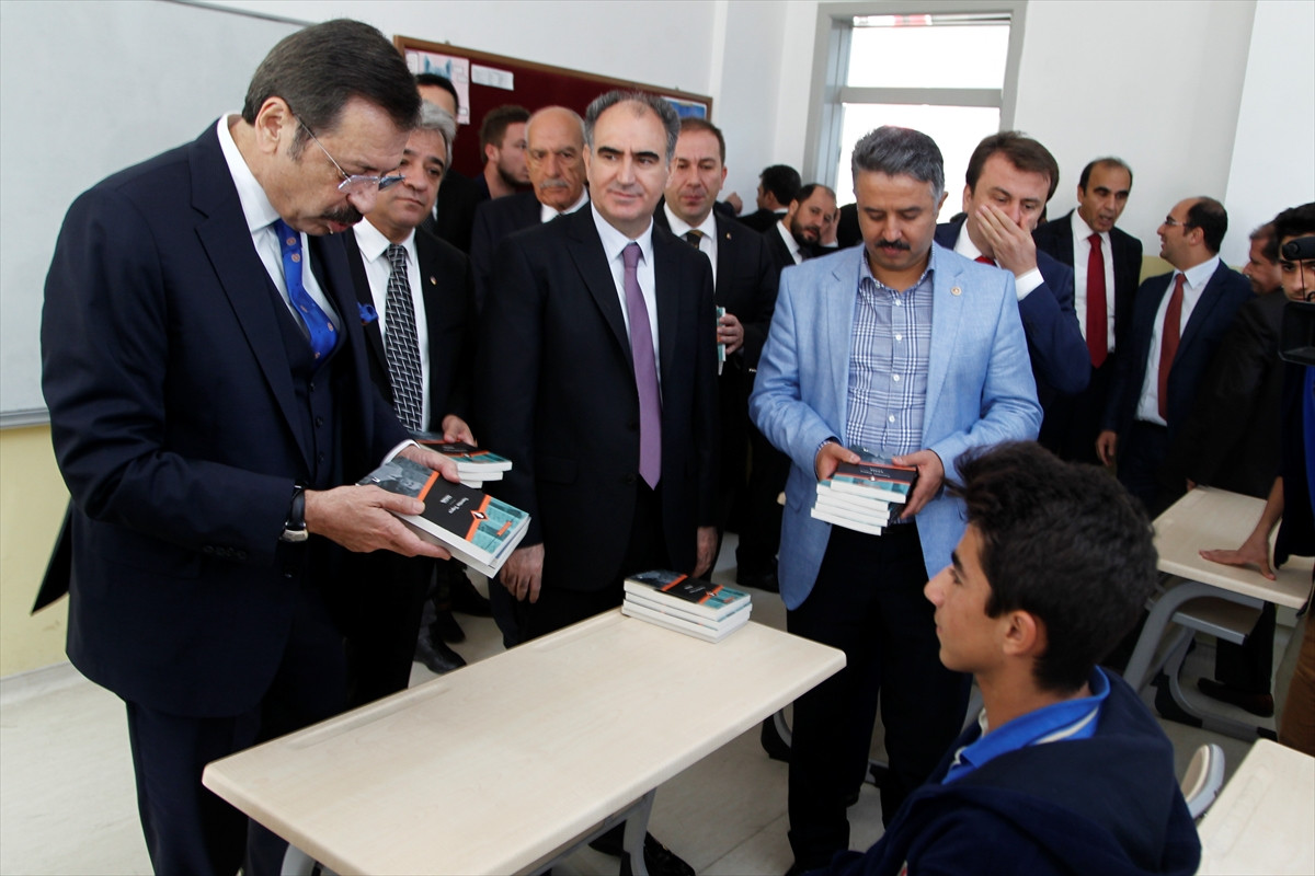 Lisenin sınıflarını gezen Hisarcıklıoğlu ve beraberindekiler, öğrencilere Nurettin Topçu'nun "Ahlak" isimli kitabını dağıttı.