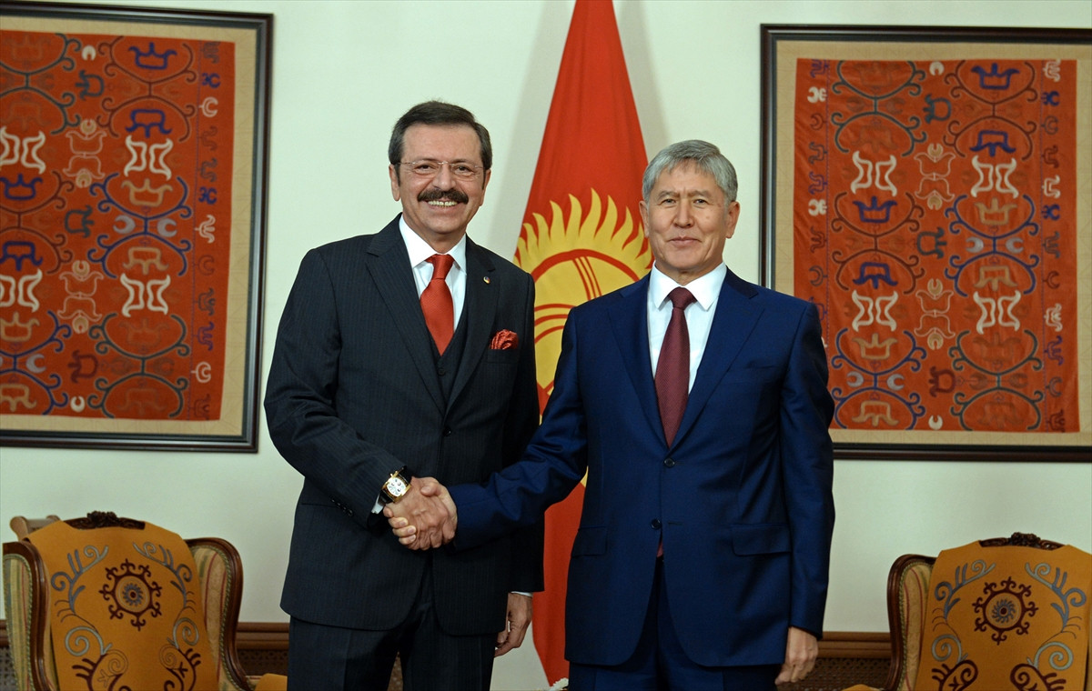 Kırgızistan Cumhurbaşkanlığı Basın Merkezinden yapılan açıklamaya göre, Cumhurbaşkanı Almazbek Atambayev’in, TOBB Başkanı Hisarcıklıoğlu’nu kabulünde Kırgız ve Türk girişimciler arasında işbirliği konuları ve iki ülke iş çevreleri arasında daha fazla işbirliği imkanları görüşüldü.