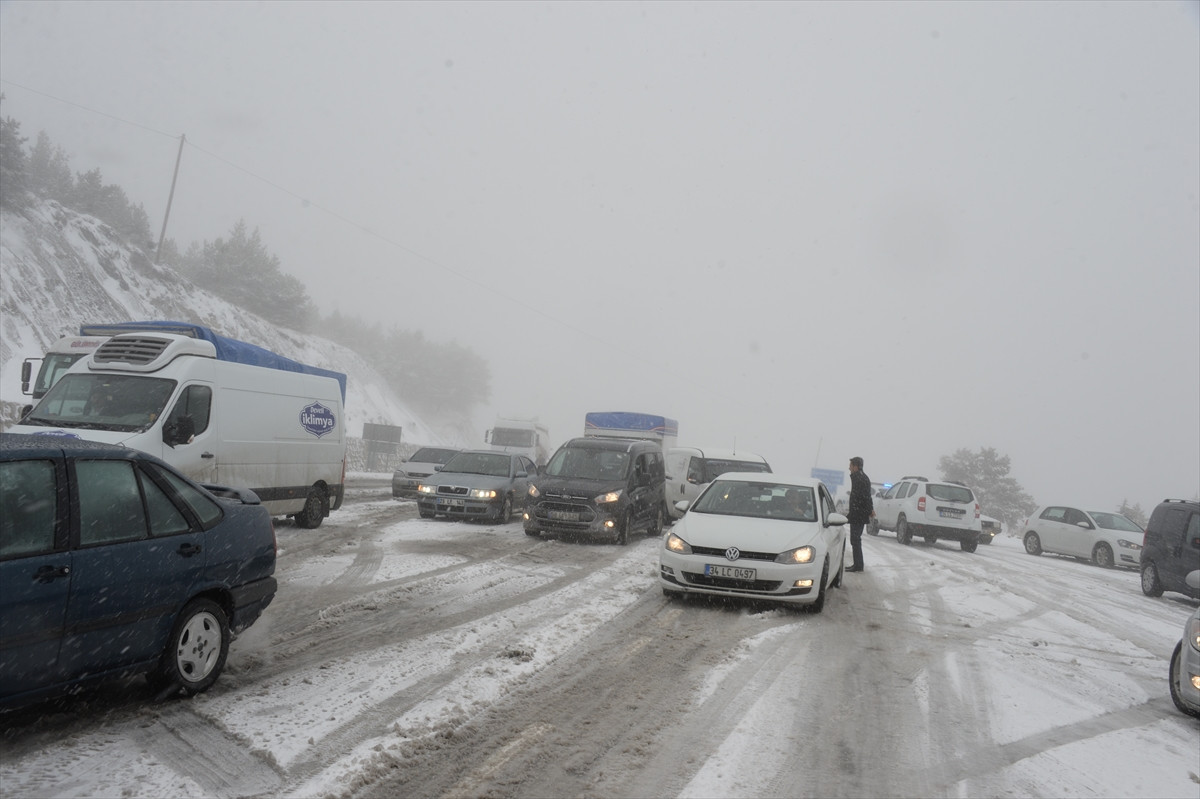 Yolda kalan bazı sürücülerin de yol kenarında araçlarının lastiklerine zincir taktıkları görüldü.
