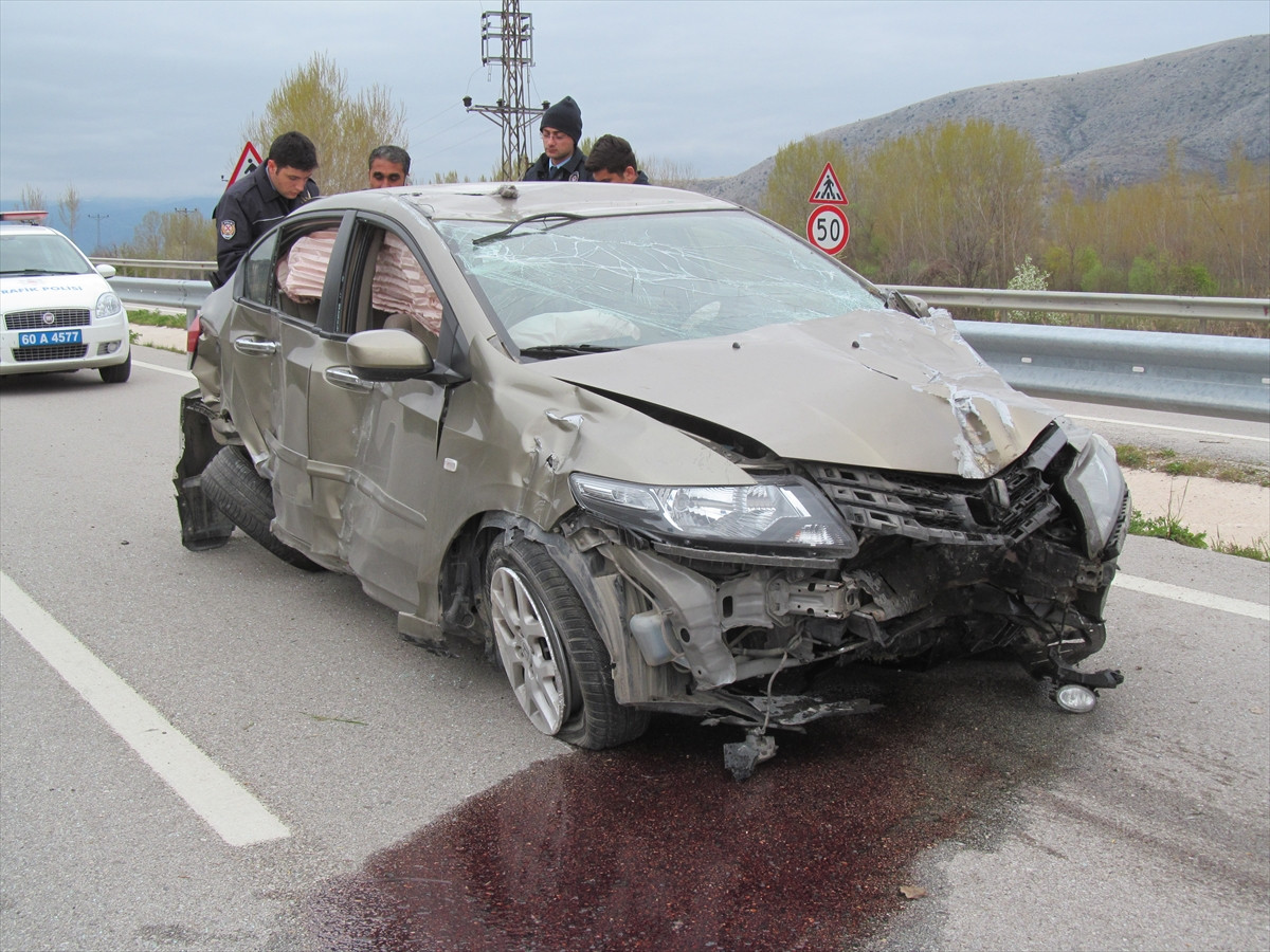 Alınan bilgiye göre, Turhal-Tokat karayolu, Çaylı köyü yakınlarında Selcan Biçici'nin (40) kullandığı 19 KT 255 plakalı otomobil, kontrolden çıkarak bariyerlere çarptı ve karşı şeride geçti.
