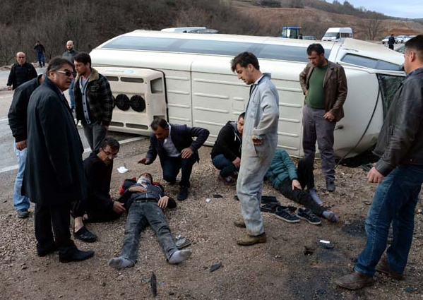 Kazada şöfor ve 15 öğrenci yaralandı. Olay yerine bir çok ambulans sevkedildi. Yaralılar ambulanslarla hastaneye kaldırıldı.
