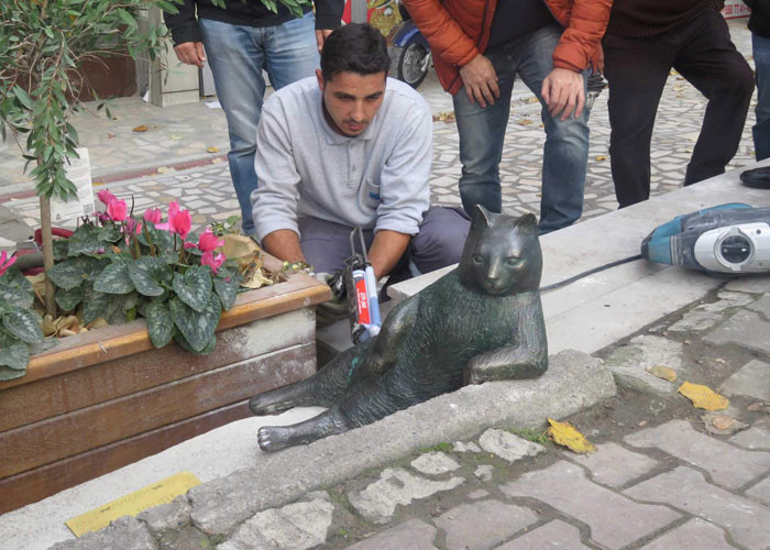 Kadıköy Ziverbey Güleç Çıkmazı'ndan kimliği belirsiz kişilerce kaidesinden kırılarak çalınan Tombili'nin heykeli, Kadıköy Belediyesi Fen İşleri Müdürlüğünce tamir ettirildi. Kedi Tombili'nin heykeli, onarımın ardından tekrar eski yerine yerleştirildi. Güleç Çıkmazı'nda yaşayan Tombili'nin 1 Ağustos'ta hayatını kaybetmesinin ardından, hayvanseverler "change.org"da Tombili'nin heykelinin yapılması için kampanya düzenlenmiş, 17 bin imza atılan "bıçkın" kedinin heykelinin yapılması kampanyasına Kadıköy Kelediyesi olumlu yanıt vermişti. Heykeltıraş Seval Şahin tarafından gönüllü olarak yapılan heykel tamamlanarak, 4 Ekim Dünya Hayvanları Koruma Günü'nde sokaktaki kaldırımda unutulmaz pozunu verdiği yere yerleştirilmişti. Tombili'nin heykeli, 8 Kasım'da kaidesinden kırılarak kimliği belirsiz kişilerce yerinden çalınmış, iki gün sonra geri getirilerek yerine bırakılmıştı.