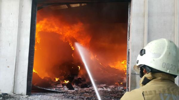 İZMİR'in Torbalı ilçesinde, tekstil fabrikasının deposunda çıkan yangın, kısa sürede büyüyüp, üretim bölümene sıçradı. Alevler, fabrikanın büyük bölümünü sararken, kontrol altına alınan yangına müdahale sürdürülüyor.