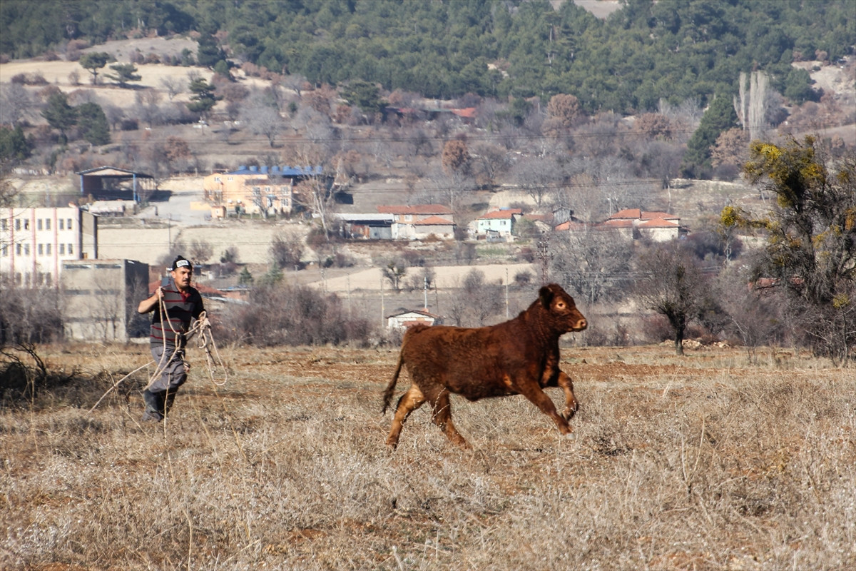 KÜTAHYA (AA) - Kütahya'nın Domaniç ilçesinde düzenlenen büyükbaş hayvan dağıtım töreninden kaçan boğa, yaklaşık 4 saat süren kovalamacanın ardından sahibine teslim edilebildi.