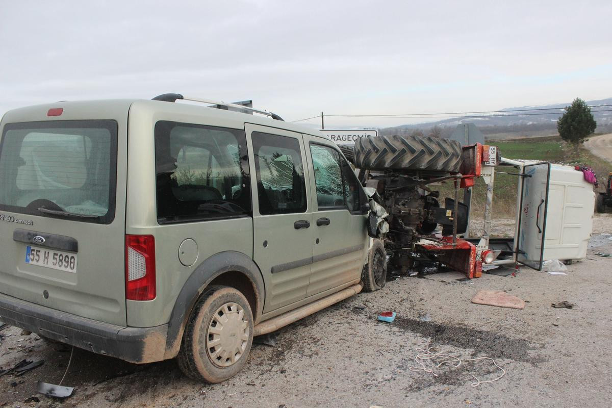 Samsun'un Havza ilçesinde, Salih Erbaş'ın (53) kullandığı 55 H 5890 plakalı hafif ticari araç, Samsun Ankara karayolunun Teberoğlu sapağında, Gazanfer Batur (65) yönetimindeki 55 HY 558 plakalı traktörle çarpıştı. Çarpışmanın etkisiyle traktör devrildi. Yaralı sürücüler ile hafif ticari araçtaki Emrullah Açıkgöz (46), 112 acil servis ekiplerince Havza Devlet Hastanesine kaldırıldı. Sağlık durumu ağır olan Açıkgöz, Samsun Eğitim ve Araştırma Hastanesine sevk edildi.
