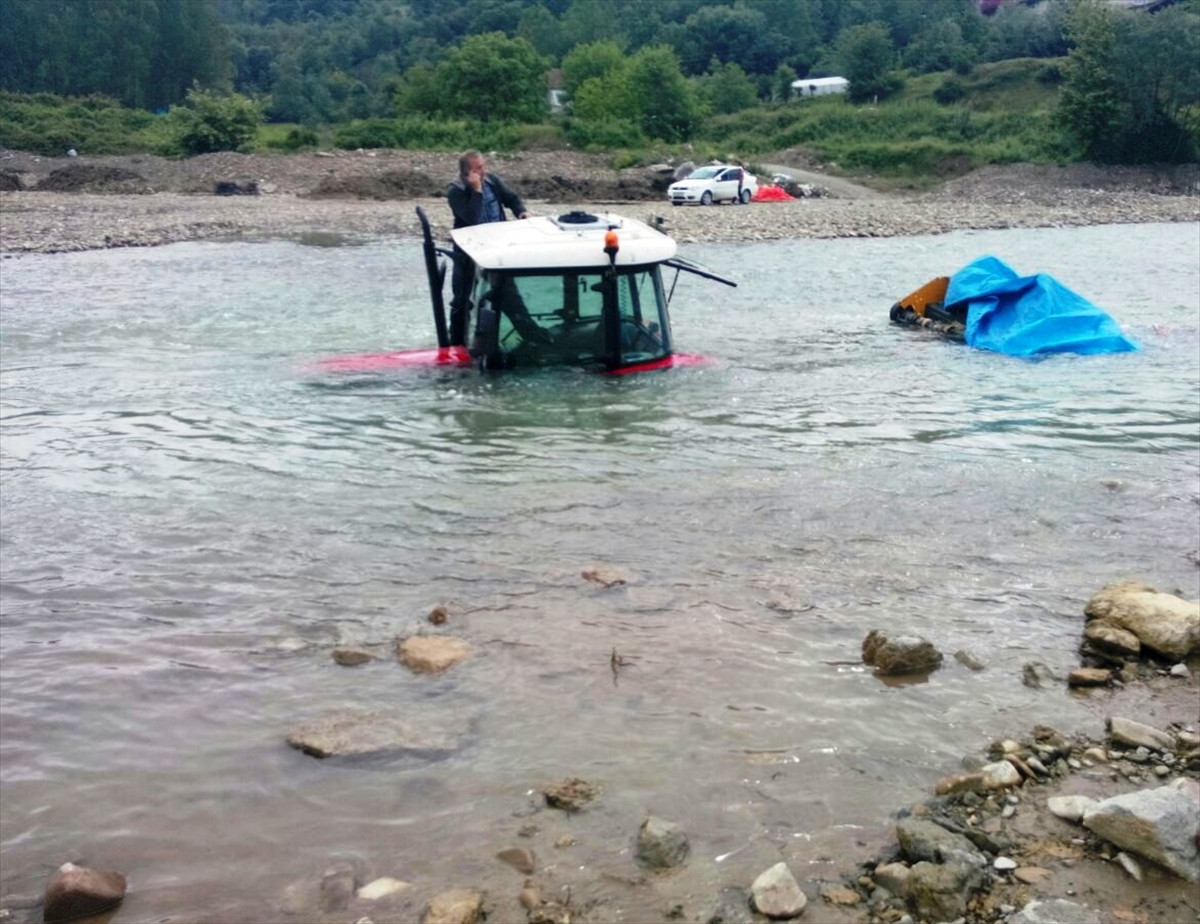 Suya gömülen traktör ise iş makinesine bağlanan halatla çıkarıldı.