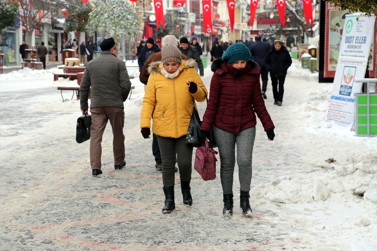 Edirne'de cuma ve cumartesi günü etkili olan kar yağışı yerini ayaza bıraktı. Beyaz örtü, soğuğun etkisiyle yollarda ve kaldırımlarda buzlanmalara neden oldu. Hem sürücüler hem de yayalar trafikte ilerlemekte güçlük yaşıyor.