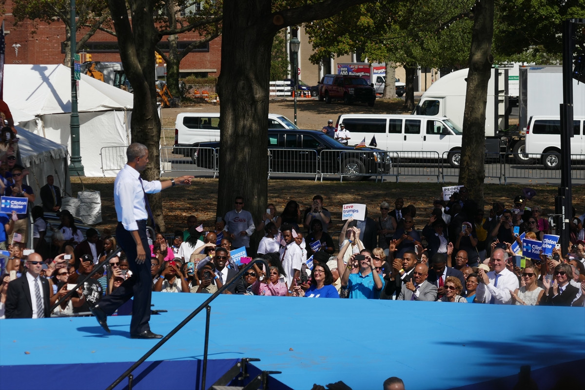 Obama, Demokrat Partinin başkan adayı eski Dışişleri Bakanı Hillary Clinton'ın kendinden sonra ülkenin 45. başkanı olarak seçilmesini sağlamak için Pensilvanya eyaletinin Philadelphia kentinde halka hitap etti.