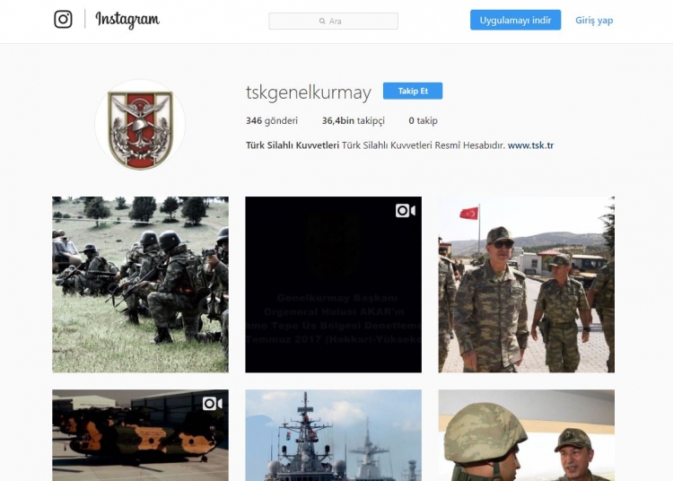 Instagram'da "tskgenelkurmay" adıyla açılan hesapta, Silahlı Kuvvetlerin tatbikat, tören ve gösterileri ile Genelkurmay Başkanı Orgeneral Hulusi Akar'ın ziyaret ve incelemelerine ait fotoğraf ve videolar paylaşılıyor.