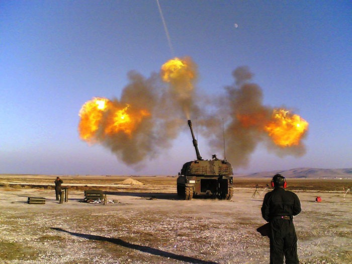 Terör örgütü IŞİD’e ait mevziler Fırtına obüsleriyle vuruldu. Edinilen bilgiye göre, gece geç saatlerden itibaren Azez ve kırsalındaki Türkmen köylerine saldırı başlatan terör örgütü IŞİD, 13 Suriyeli’yi yaraladı. Yaralılar ambulanslar ile Kilis Devlet Hastanesi’ne kaldırılırken, yaralılardan biri yapılan tüm müdahalelere rağmen hayatını kaybetti. 12 Suriyelinin tedavisi ise sürüyor. Gece saatlerinden itibaren sınır karakollarında konuşlu bulunan Fırtına obüs topları ve ateş destek vasıtalarıyla IŞİD mevzileri vuruldu. Top atışları kent merkezinden duyulurken, IŞİD ile Özgür Suriye Ordusu arasında Türkiye sınırına 15 kilometre mesafede yer yer çatışmalar sürüyor. IŞİD’in bazı köyleri ele geçirdiği, saldırılarını sürdürdüğü bildirildi.