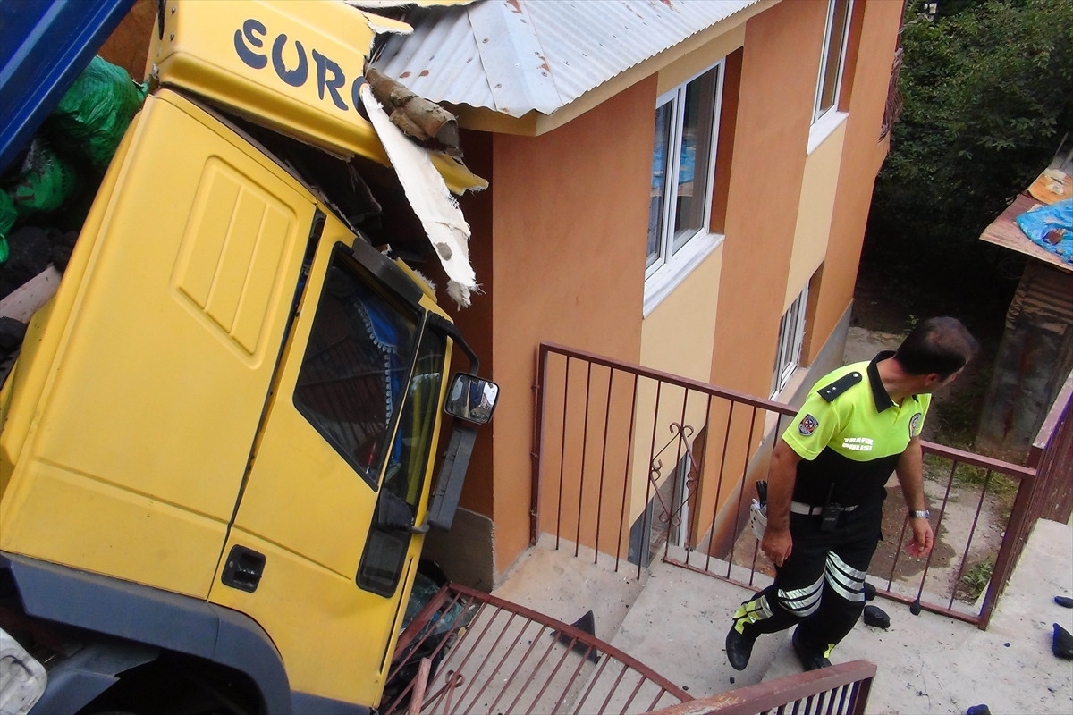 TUNCELİ (AA) - Tunceli'de freni boşalan kömür yüklü tır, yolun alt kısmındaki iki katlı evin üzerine devrildi.