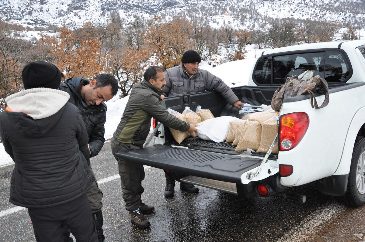 TUNCELİ (AA) - Tunceli'de karın etkisini göstermesiyle yiyecek bulma sıkıntısı çeken yaban hayvanları için doğaya yem bırakıldı.