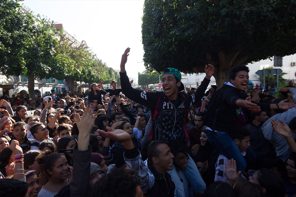 Başkent Tunus'un Habib Burgiba Caddesi'nde toplanan binlerce lise öğrencisi, yeni sınav sistemini protesto etti.