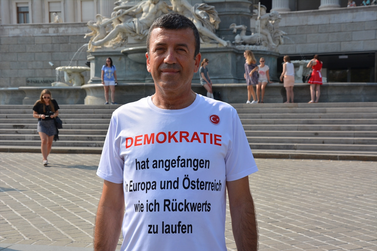 VİYANA (AA) - Mersin’den Avusturya’nın başkenti Viyana’ya gelen doktor Ali Küçük, Avusturya ve Avrupa’nın 15 Temmuz darbe girişimi sonrası tutumunu protesto etti.