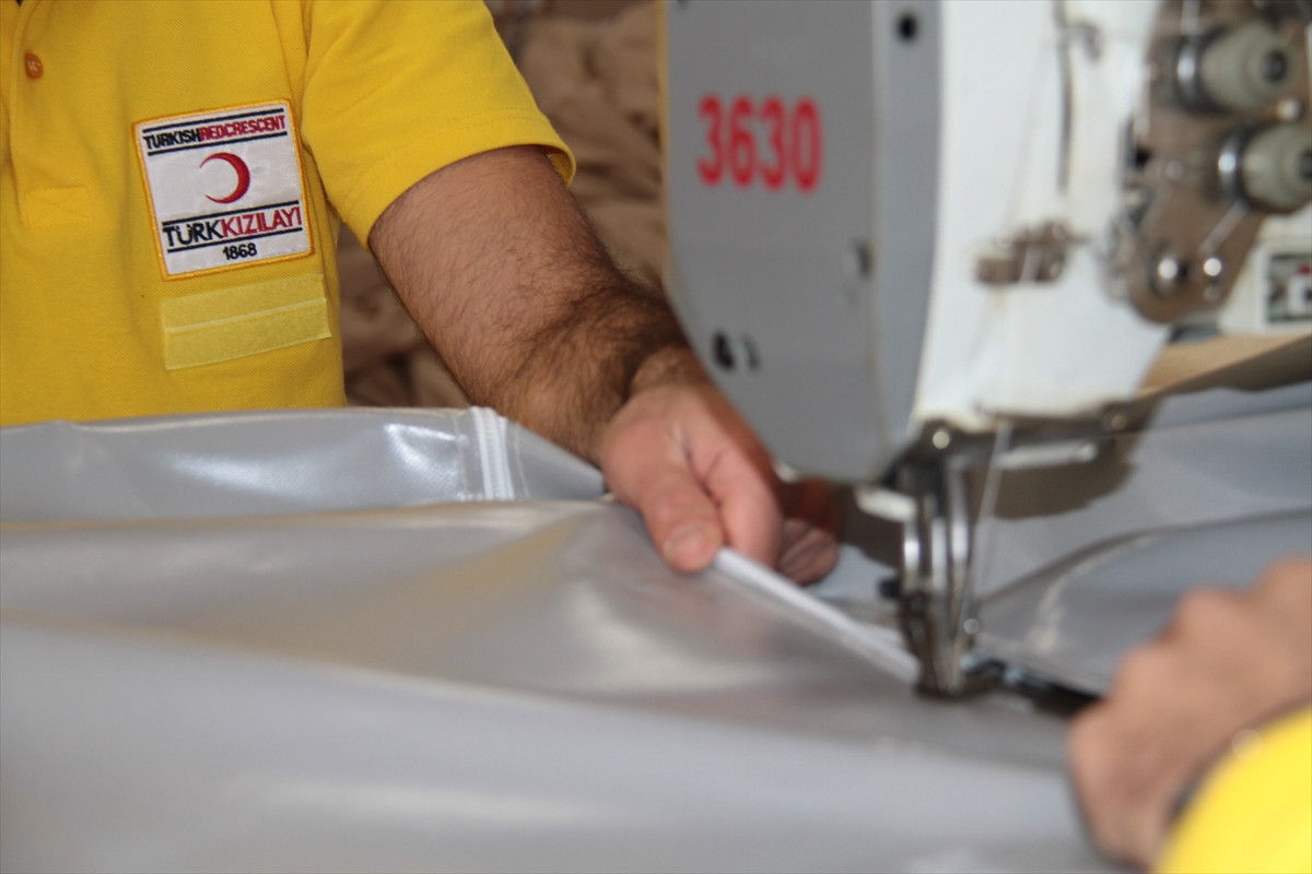 Bayata, atölyede daha önce Van depreminde kullanılan çadırların tamir edildiğini ve binlerce çadır üretildiğini anlatarak, "Atölyemizde Van depreminde kullanılan yaklaşık 12 bin çadır tamir edildi. Burada günlük ortalama 10 çadır üretmeyi düşünüyoruz." dedi.