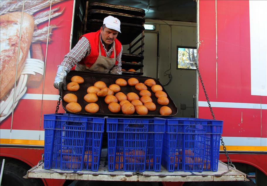 Suriye'de iç savaşın ilk gününden bu yana Suriye halkının yanında yer alan Türk Kızılayı, yoğun saldırılar sonucu evlerini terk edip, sınırda güvenli bölgelere yerleşen Bayırbucak Türkmenlerinin de imdadına yetişiyor. Kendi temin ettiği veya Türkiye'deki hayırsever kişi ve derneklerin yardımlarını 4 yılı aşkın süredir Suriyelilere ulaştıran Türk Kızılayı, Bayırbucak Türkmenleri için 2014 yılı Mayıs ayında kurduğu mobil fırının yanına sıcak yemek için mobil mutfak da tesis etti. Yaklaşık 1,5 yıldır günlük 5 bin ekmeği Türkmen köylerine ulaştıran Türk Kızılayı, son günlerde göçün artması nedeniyle bu sayıyı günlük 10 bin ekmeğe çıkarttı. - Mobil mutfak devreye sokuldu Ekipler, evlerini terk edip, Türkiye sınırı yakınlarındaki güvenli bölgelere gelen ve çadırlara yerleşen Türkmenlere sıcak yemek için mobil mutfağı da devreye soktu. Yayladağı ilçesine kurulu mobil mutfakta pişirilen yaklaşık 4 bin kişilik çorba, pilav ve makarna, burada tencerelere aktarılıp, sınıra getiriliyor. Sınırın sıfır noktasında bekleyen araca konulan yemekler, sınırın diğer tarafındaki Türkmenlere dağıtılıyor. Haftanın her günü 24 saat insani yardım için çalışan 20 kişilik Türk Kızılayı personeli, günlük 10 bin ekmek ve 4 bin kişilik 2 öğün sıcak yemeği Türkmenlere ulaştırıyor. Ekipler, kuru gıda, kıyafet, ilaç ve barınma malzemelerini de sınır ötesine ulaştırmaya devam ediyor.