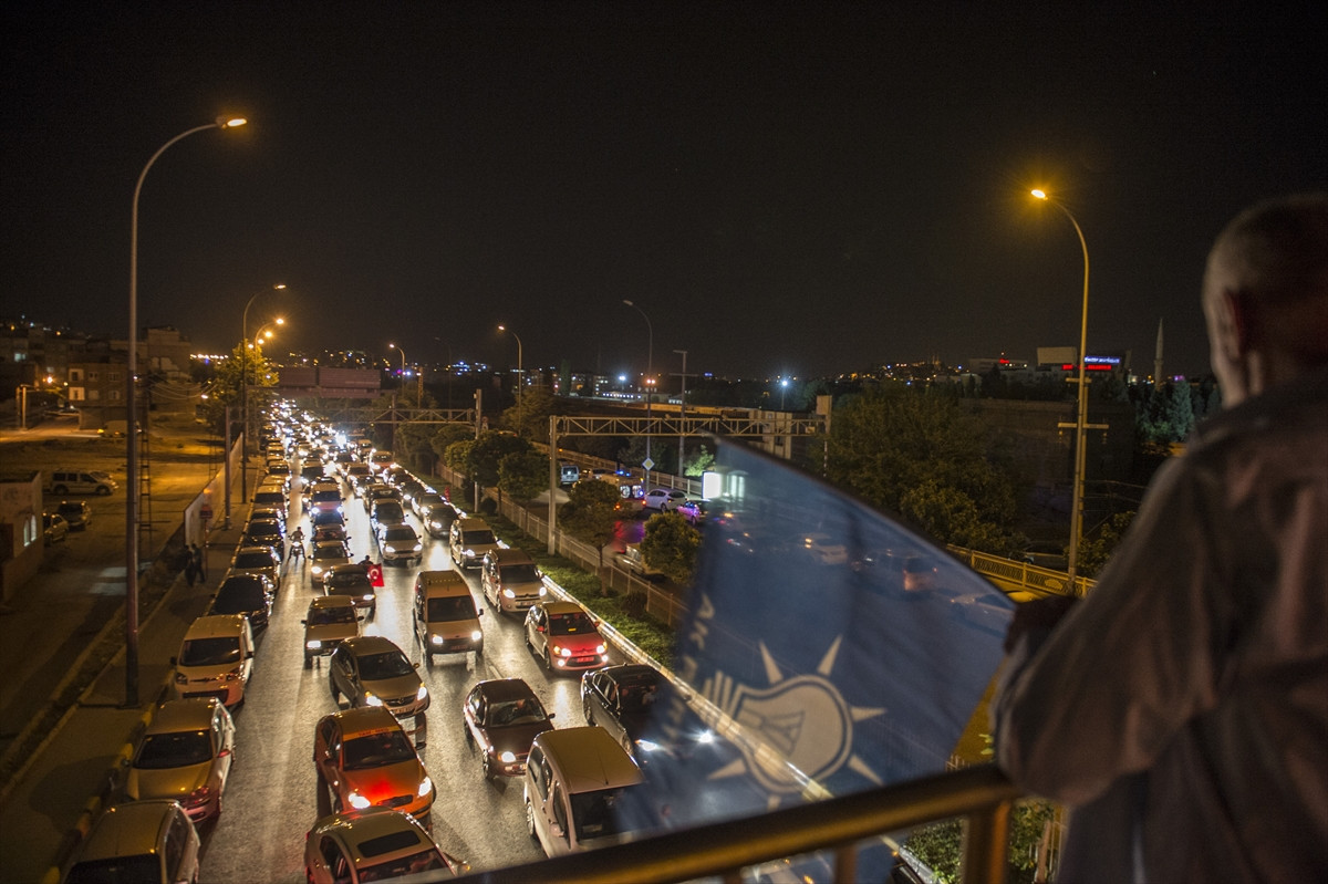 Araçlarıyla yola çıkan binlerce kişi, caddelerden, arterlerden Demokrasi Meydanı’na korna çalarak geliyor.