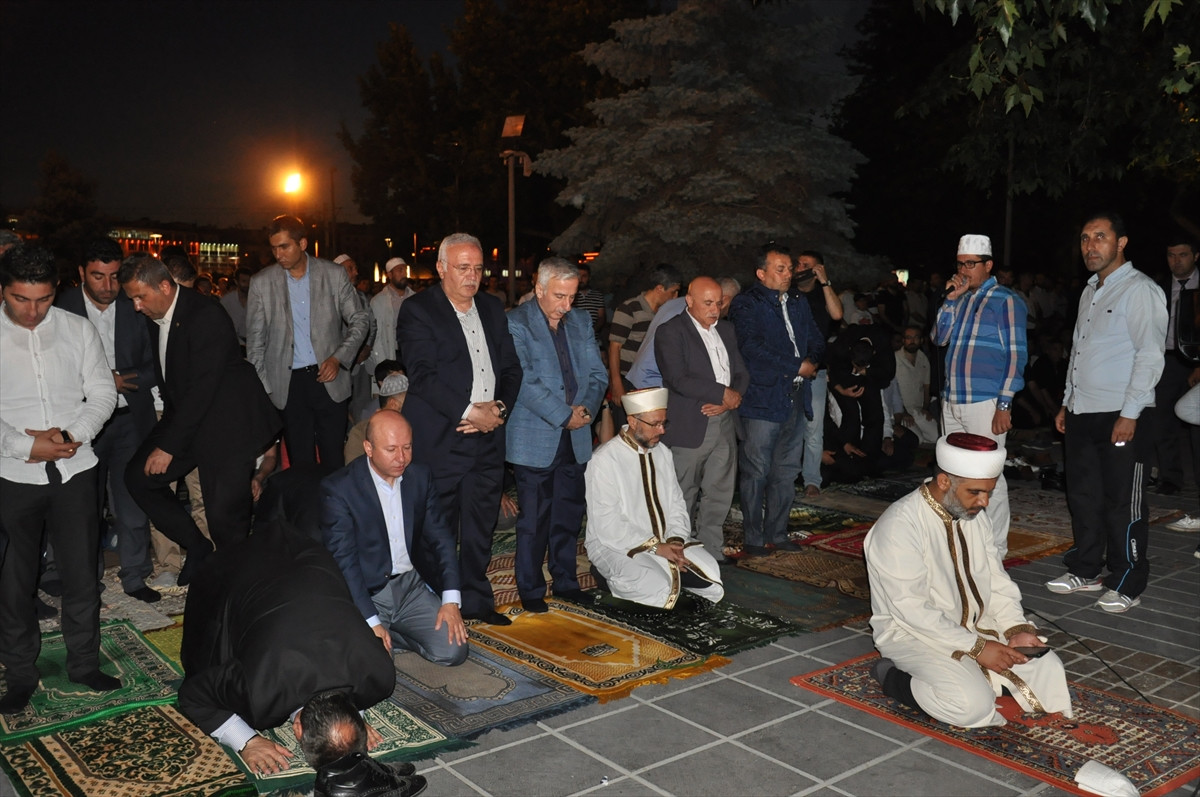 Daha sonra Vali Kamçı ve AK Parti Grup Başkanvekili Mustafa Elitaş, Cumhuriyet Meydanı'ndaki Bürüngüz Camisi'nde binlerce vatandaşla sabah namazında saf tuttu.