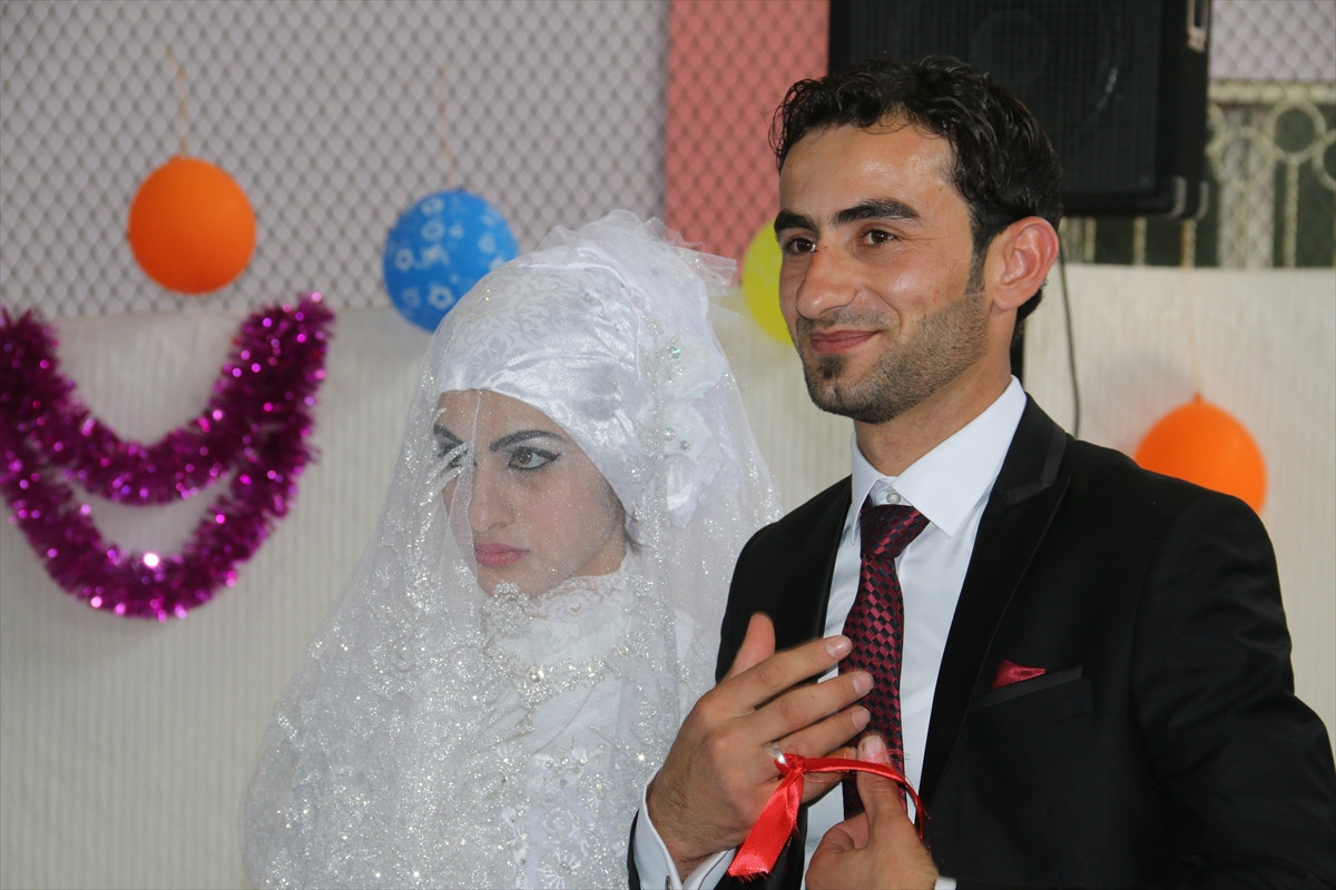 KERKÜK (AA) - Türkiye Diyanet Vakfı tarafından, Musul'daki terör saldırılarından kaçarak Kerkük'e yerleşen 6 çift için toplu düğün yapıldı.
