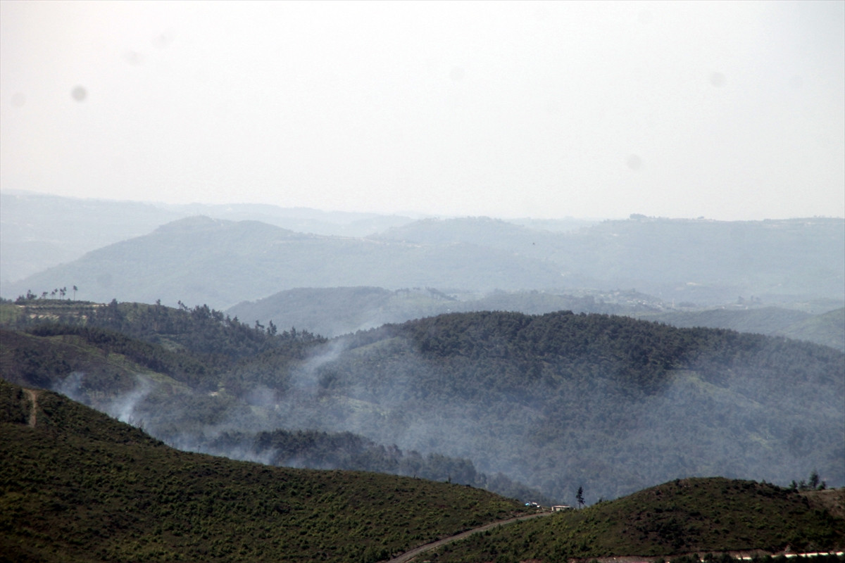 HATAY (AA) - Hatay'ın Yayladağı sınırı karşısında bulunan Bayırbucak Türkmen bölgesindeki 2 noktada orman yangını sürüyor.