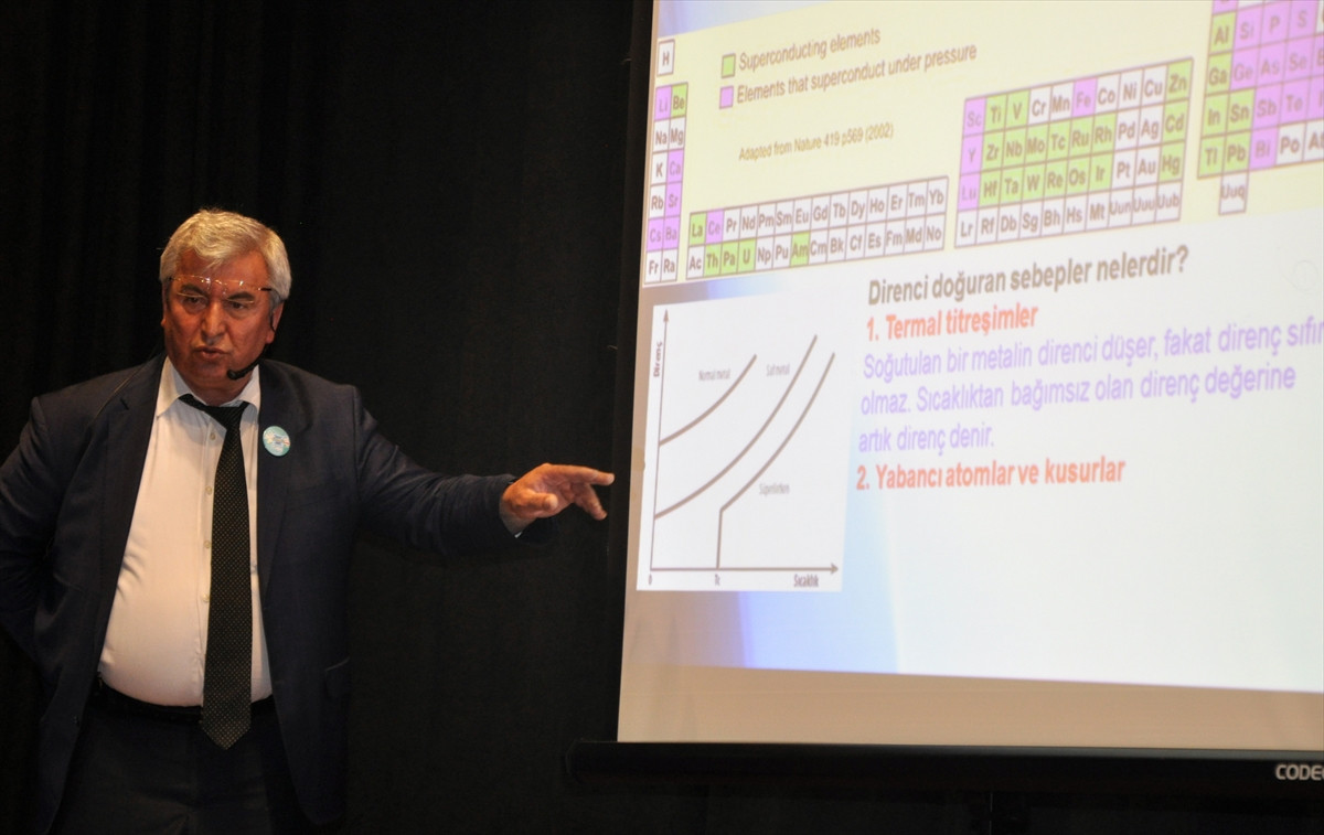 Azar'ın konuşmasının ardından katılımcılara 'Maglev Tren Gösterisi' deneyini gösteren Yanmaz, eksi 196 derecede dondurulan sıvı azotu, tren şekli verilen cismin üzerine dökerek oluşturulan manyetik alanda havada hareket etmesini sağladı.