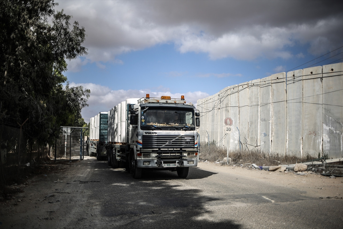 Kerm Ebu Salim Sınır Kapısı Müdürü Munir el-Galban, AA muhabirine yaptığı açıklamada, Türkiye'den gemiyle gelen yardımlardan gıda malzemesi taşıyan 25 tırın Kerm Ebu Salim Kapısı'ndan Gazze'ye girdiğini belirtti.