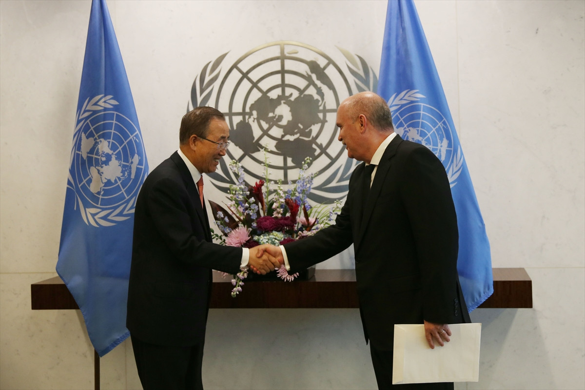 Ban, Büyükelçi Sinirlioğlu'nu Genel Sekreterlik Ofisi'nde kabul etti.