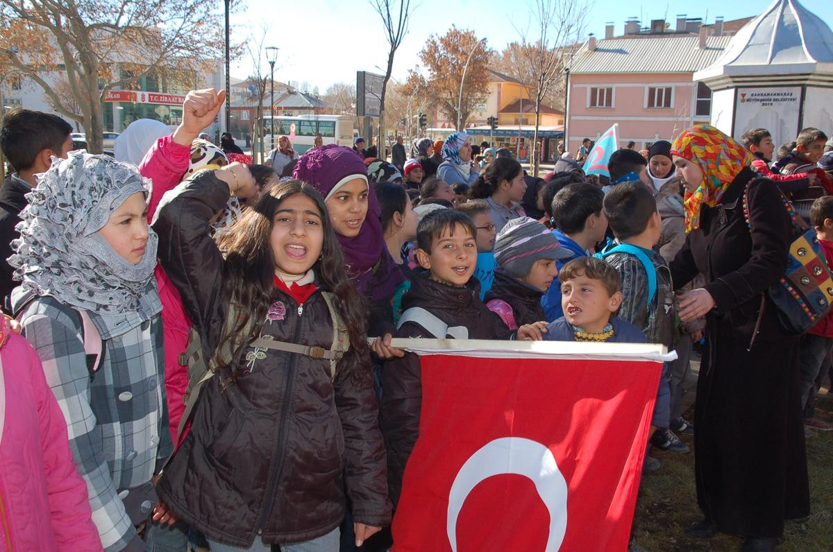 KAHRAMANMARAŞ (AA) - Suriye'deki iç savaştan kaçarak Kahramanmaraş'ın Afşin ilçesine yerleşen Türkmenler, kendilerine kucak açan Türkiye'ye teşekkür etmek için miting düzenledi.