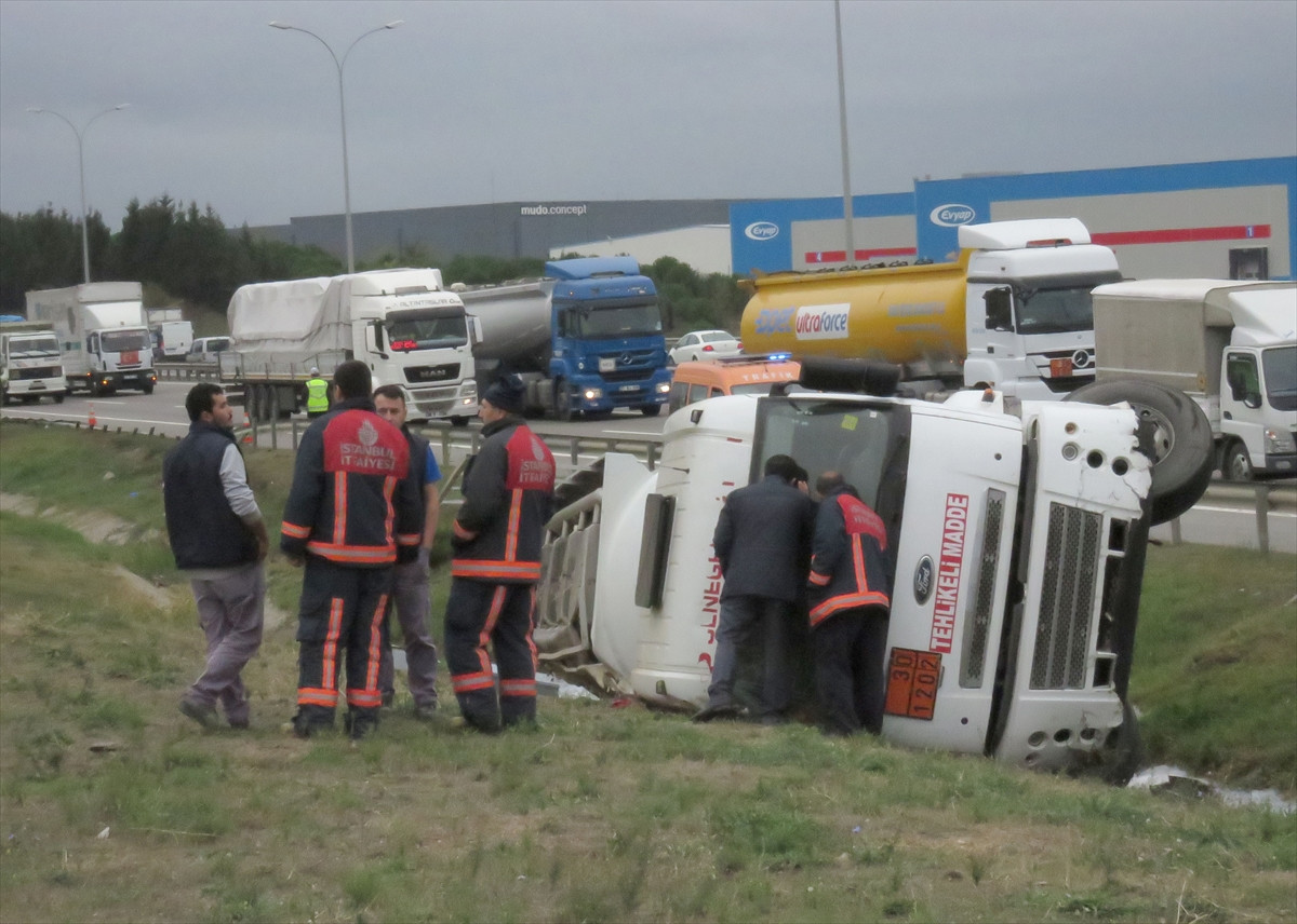 TEM otoyolu İstanbul yönünde seyreden Namet Öz'ün kullandığı 34 YL 125 plakalı mazot yüklü tır, Tuzla Aydınlı mevkisinde kontrolden çıkarak önce bariyerlere çarptı. Bariyerleri aşan tır, yol kenarındaki yeşillik alana devrilerek durdu. Sürücü Öz'ün yaralandığı kazanın ardından olay yerine itfaiye ve sağlık ekipleri sevk edildi.