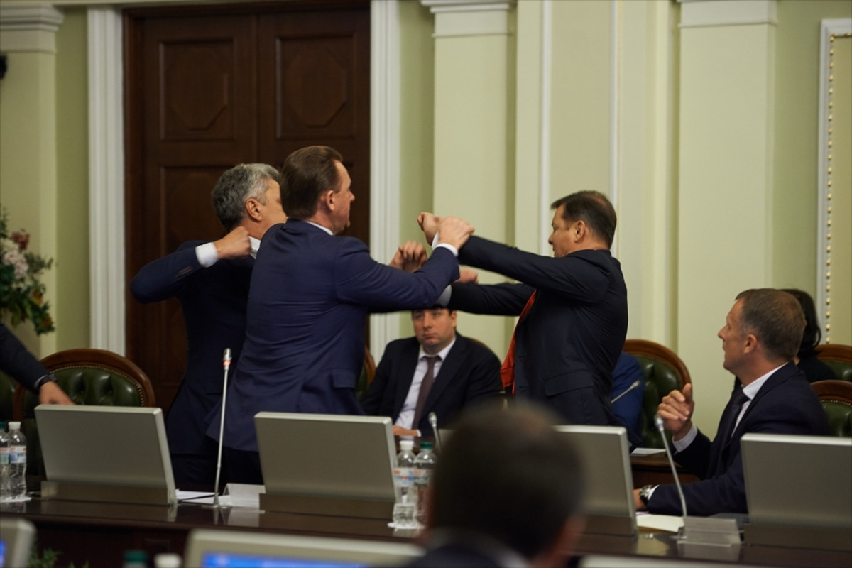 KİEV (AA) - Ukrayna Parlamentosunda Uzlaşma Konseyi toplantısında iki siyasi partinin lideri arasında kavga çıktı.