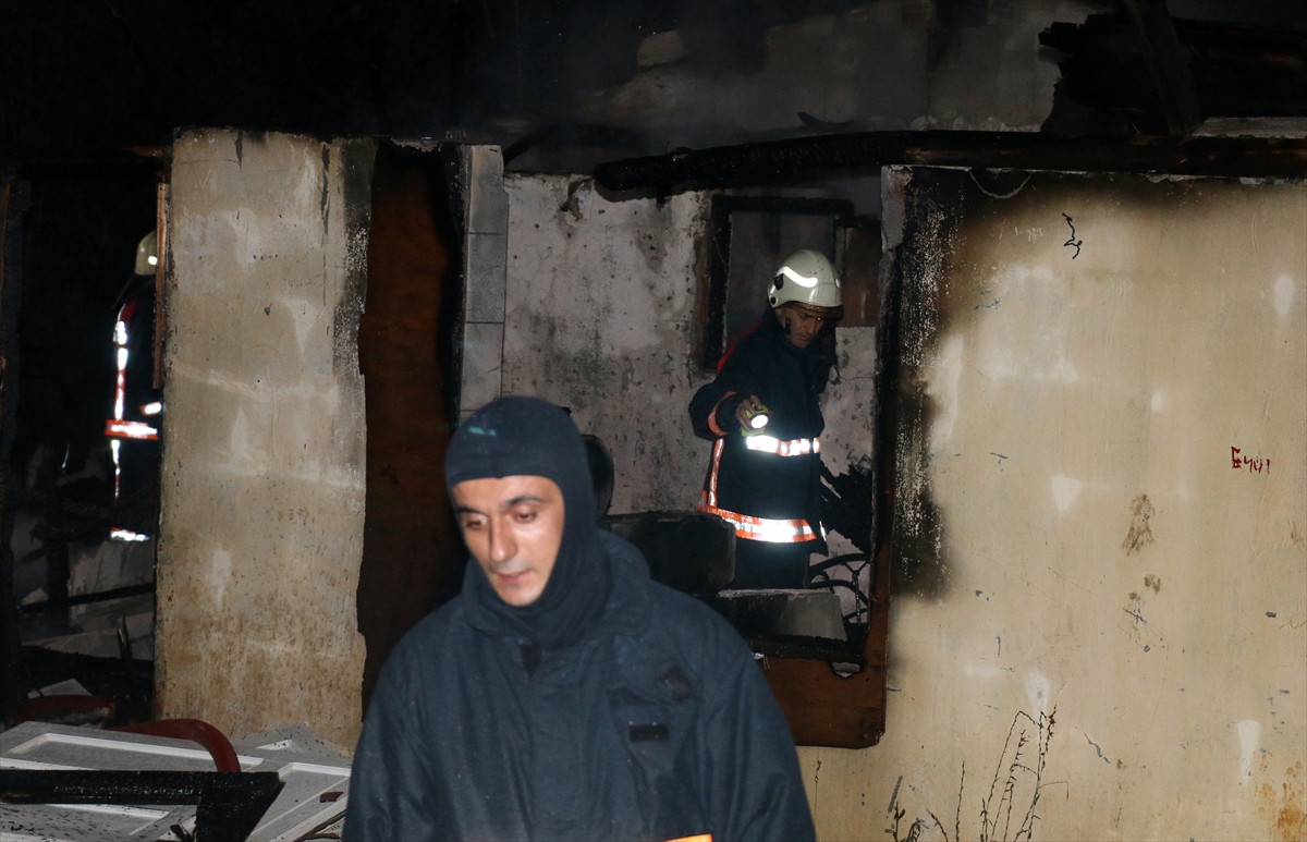İtfaiye ekiplerinin yoğun çabasıyla söndürülen yangın sonucu gecekondu kullanılamaz hale geldi.