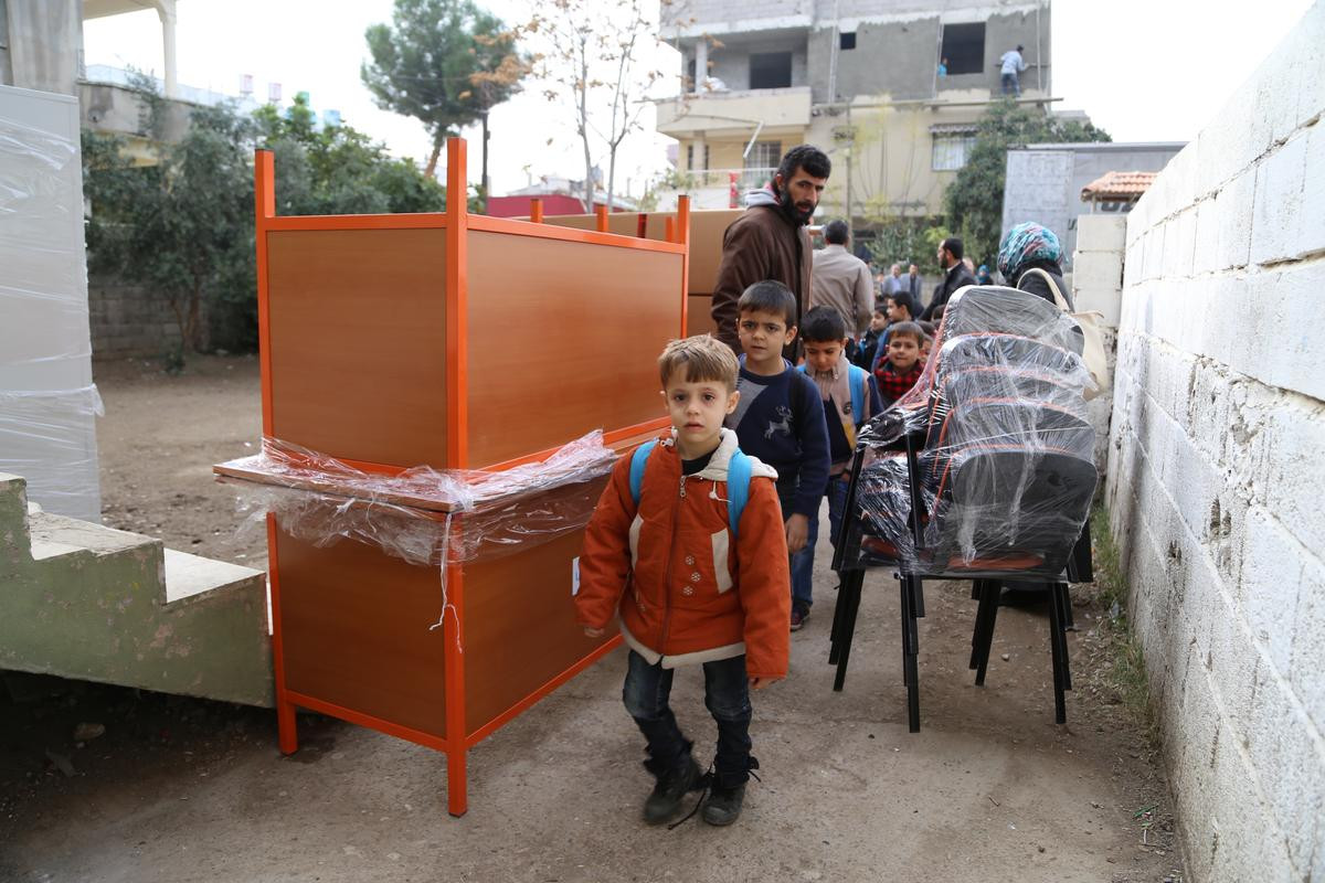 İlçedeki 17 Suriye okuluna ayrıca, 124 öğretmen ve 24 toplantı masasıyla, 420 sandalye ve 77 öğretmen dolabı desteğinin de sağlandığı öğrenildi.