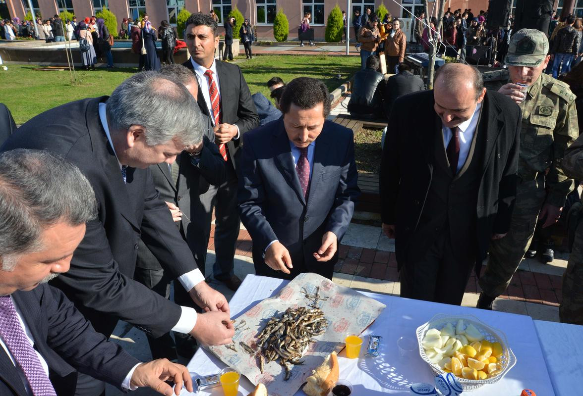 Cumhuriyet Yerleşkesi'nde kurulan ızgaralarda pişen hamsi için uzun kuyruklar oluştu. Protokol üyeleri, akademisyen, personel ve çok sayıda öğrencinin katılımıyla yapılan şölende, yaklaşık bir saatte 2 ton hamsi tükendi. Öğrenciler, kemençe eşliğinde horon oynadı.