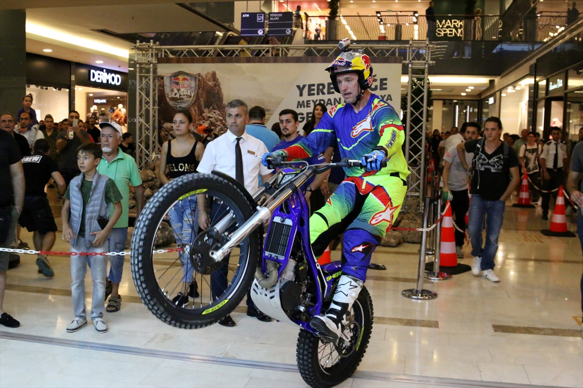 ANTALYA (AA) - Dünyaca ünlü enduro yarışçısı Brian Capper'in Antalya'daki bir alışveriş merkezinde yaptığı gösteride heyecanlı anlar yaşandı.