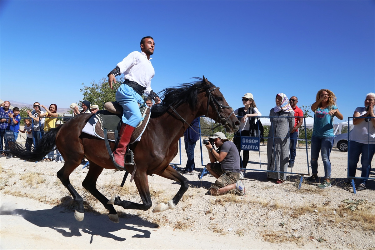 Daha sonra, Kapadokya Atçılık Spor Kulübü tarafından "atlı savaş sanatları" gösterisi sunuldu. Atların üzerinde akrobatik hareketler yapan jokeyler, izleyenlerden alkış aldı.