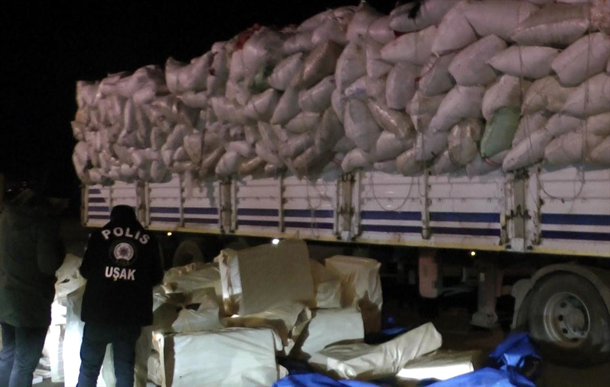 Alınan bilgiye göre, Uşak Emniyet Müdürlüğü Kaçakçılık ve Organize Suçlarla Mücadele ekipleri, Ankara-İzmir karayolu Şeker Fabrikası yakınlarındaki kontrol noktasında şüpheli araçlara yönelik sürdürdüğü denetimler kapsamında, elyaf çuvalı yüklü tırı durdurdu.