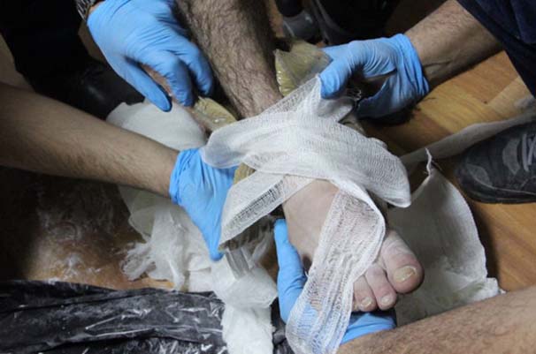 Operasyonda koltuk değnekli ayağı sargılı bir kişi tespit edildi. Yapılan kontrollerde yolcunun ayağındaki alçının içinde toplam 1.850 gram toz esrar ele geçirildi.