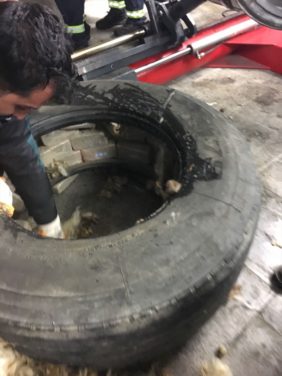 Araçta yapılan aramada lastiklerin içine gizlenmiş 210 kilogram eroin ele geçirildi, sürücü gözaltına alındı.