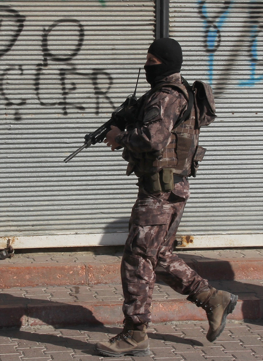 Terör örgüt PKK yandaşlarının sık sık yasa dışı gösteri düzenlediği mahalledeki eve özel harekat ve çevik kuvvet ekiplerince operasyon düzenledi.