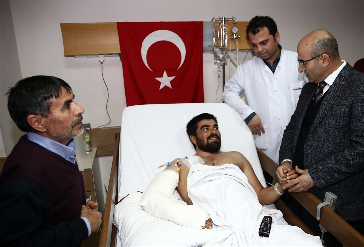 ADANA (AA) - Adana Valisi Mahmut Demirtaş, Suriye'nin kuzeyindeki terör hedeflerine yönelik yürütülen Fırat Kalkanı Harekatı'na katılan ve El-Bab bölgesinde yaralanan Uzman Çavuş Erdem Durna'yı tedavi gördüğü hastanede ziyaret etti.